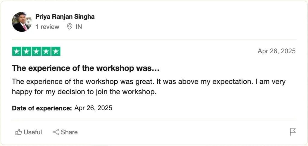 You will receive emails and whatsapp messages from our team to remind you about the workshop.